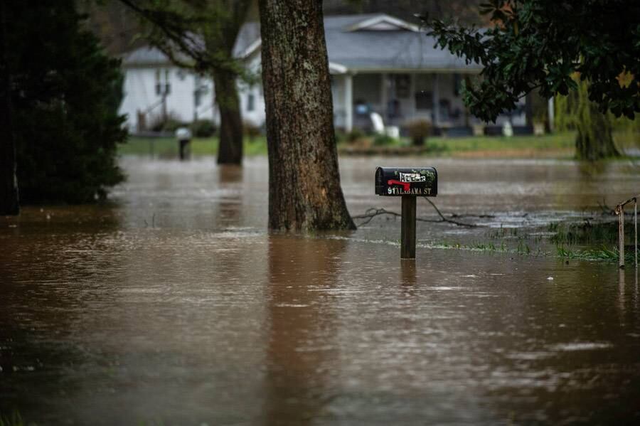 El río Tennessee llegó al borde el miércoles en Perryville, Tennessee, registrando su tercer nivel más elevado de la historia. Varias construcciones a un costado del río se encuentran sumergidas en distintas localidades, y se cortó el suministro de agua potable en algunas zonas.