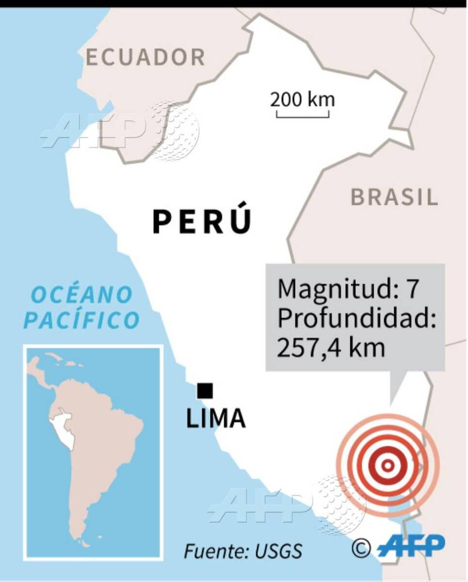 El epicentro se situó a una profundidad de 257 kilómetros, precisó el Instituto Geológico de Estados Unidos (USGS), que explicó que la mayoría de los grandes sismos en Sudamérica ocurren por lo general a una profundidad de 70 km o menos.