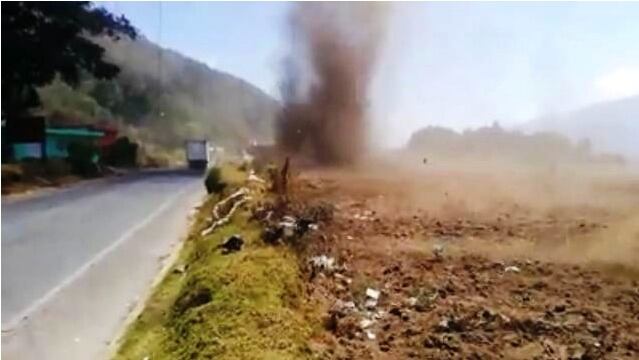 La Coordinadora Nacional para la Reducción de Desastres (Conred) indicó que se dio en la aldea La Emboscada, San Miguel Sigüilá, a las 15:00 horas y tenía la forma de un remolino de viento de varios metros de altura.