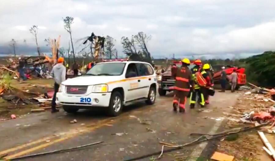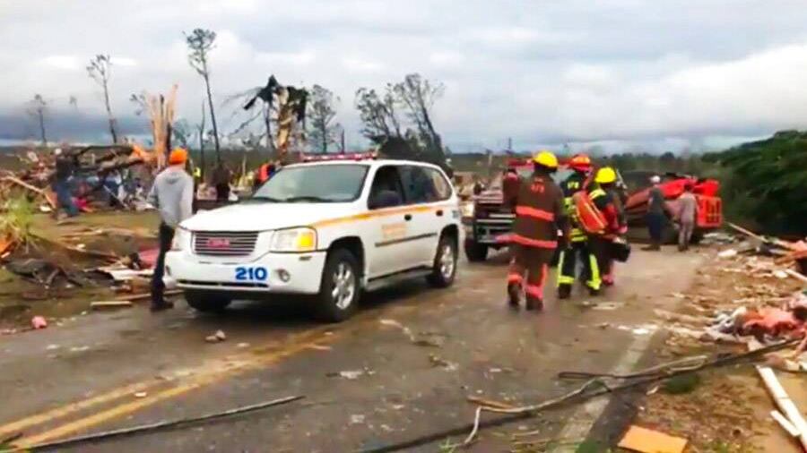 Docenas de rescatistas se movilizaron en el condado Lee, de Alabama, tras el paso de lo que aparentemente fue un enorme tornado, el cual surgió de un poderoso sistema de tormentas que sacude el sureste.