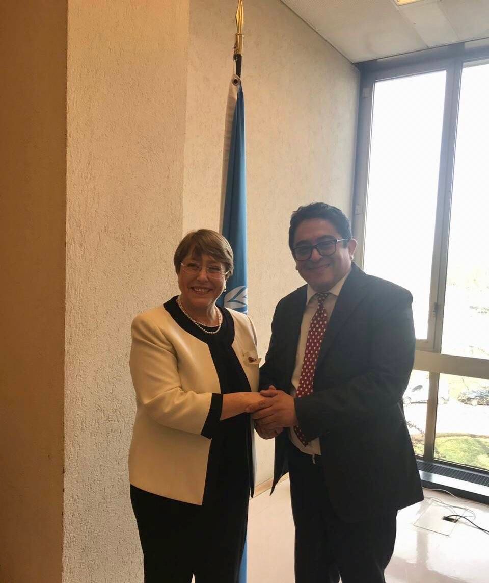 El procurador de los Derechos Humanos (PDH), Jordán Rodas, se reunió con la alta comisionada de las Naciones Unidas para los Derechos Humanos, Michelle Bachelet.