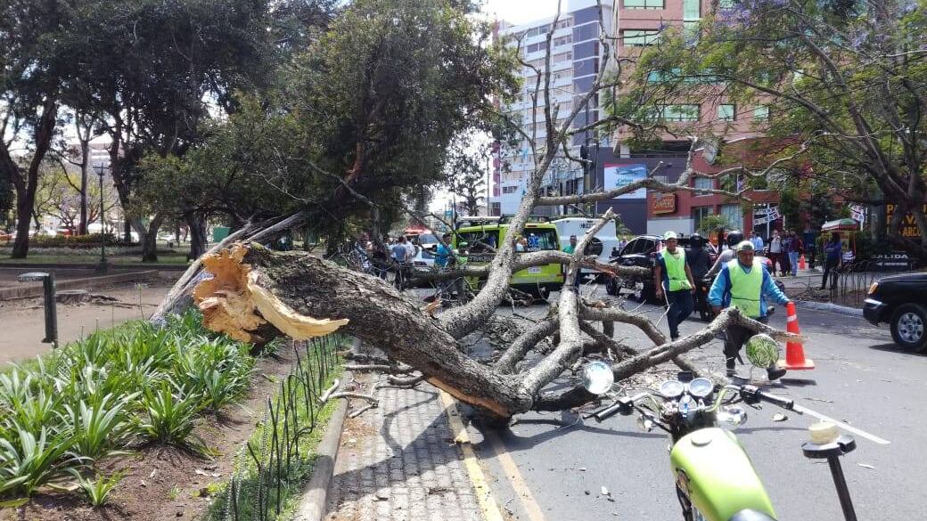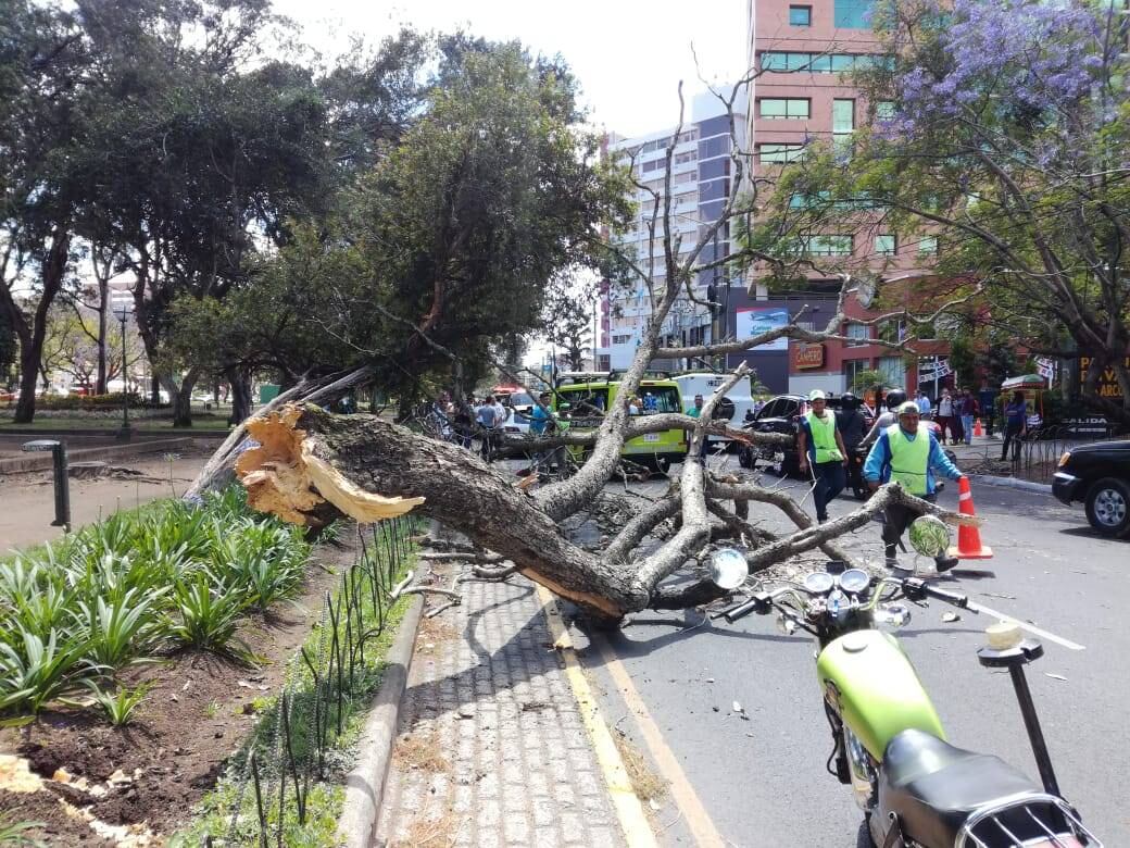 Por aparte, circularon en Twitter las fotografías de un árbol que se derrumbó y cayó sobre un vehículo en la avenida Las Américas y 13 calle, zona 13.