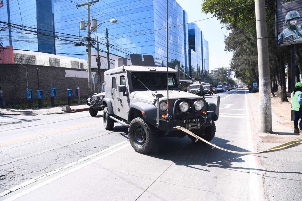 Desde primera hora de este viernes, varios vehículos militares Jeep J8 han sido movilizados, desde varios puntos de la Ciudad, hacia las instalaciones de la Fuerza Aérea Guatemalteca.