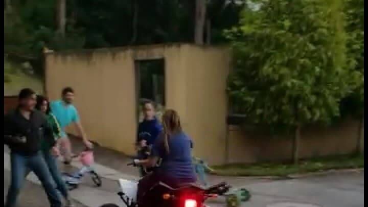 Entre los videos que han circulado, se muestra el momento en el que la mujer intenta atropellar a una vecina con una cuatrimoto. Sin embargo, al embestirla se cae del vehículo.
