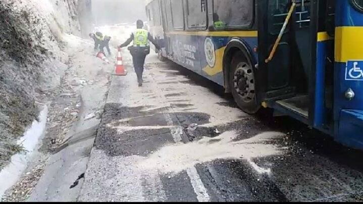 Los agentes se encuentran esparciendo material sólido sobre la carretera para evitar así que más conductores se vean afectados.