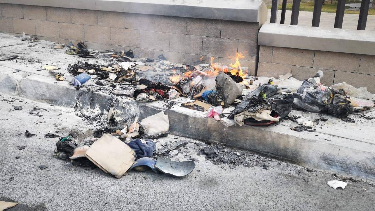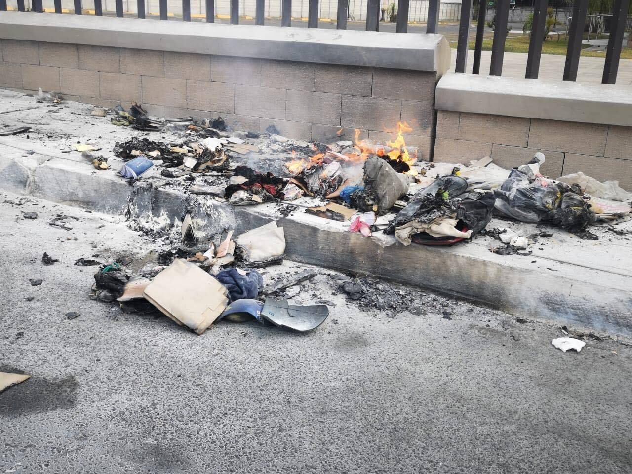 Esto generó la molestia de la turba, por lo que incendió una motocicleta propiedad de las fuerzas de seguridad. La misma quedó semidestruida.