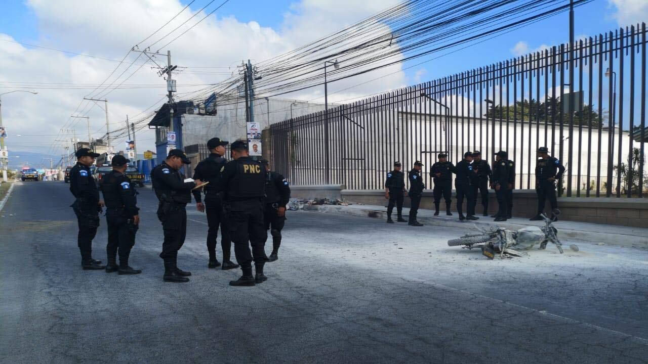 En el lugar de los hechos quedó semidestruida una motocicleta de la Policía Nacional Civil. La misma fue incendiada por los inconformes, luego de que los agentes que se movilizaban en ella intentaran rescatar a los vapuleados.