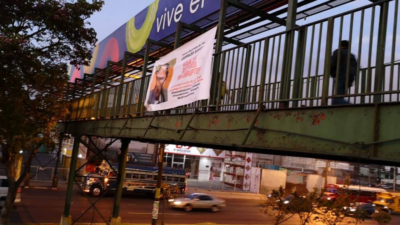 Varias mantas en donde se pide la destitución de Leopoldo Guerra, director del Registro de Ciudadanos del Tribunal Supremo Electoral (TSE), se observan este miércoles en las calles de la Ciudad.