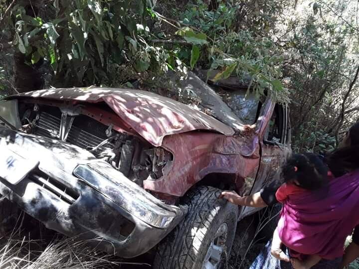 El hecho se registró cuando un vehículo tipo pickup cayó al fondo de un barranco de aproximadamente 200 metros de profundidad.