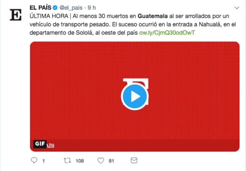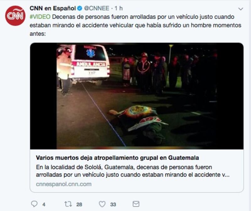 Además, la misma fuente informó de al menos otras 19 personas heridas, que fueron trasladados al Hospital Nacional de Sololá, aunque aseguraron que siguen trabajando en el lugar donde se produjo el accidente.
