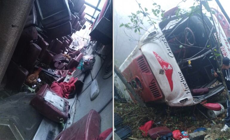 Un bus extraurbano de Transportes Velasquez cayó al fondo de un barranco en el kilómetro 154 de la ruta interamericana.