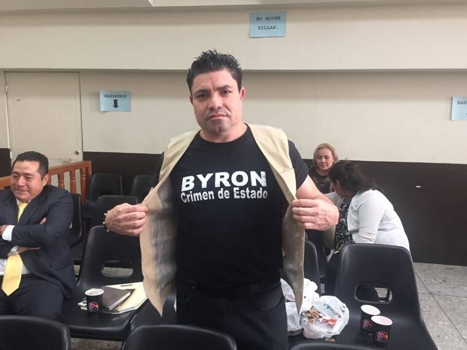 Montiel Marín acudió a la diligencia vistiendo una camiseta de color negro y con un mensaje escrito con letras blancas, en el cual se leía: "Byron, crimen de Estado".
