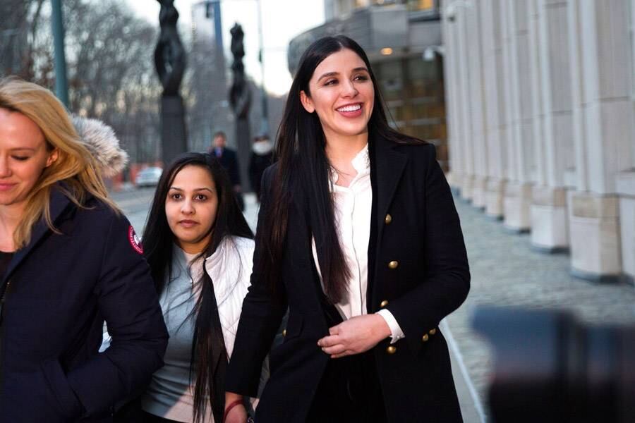 Tras el veredicto, leído por el juez Brian Cogan en la corte federal de Brooklyn, Guzmán, de 61 años, saludó a su joven esposa, la modelo Emma Coronel, con la mano.