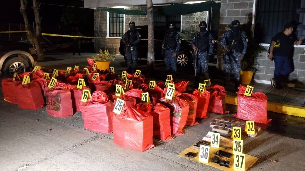 Según autoridades, en total fueron decomisados 84 paquetes con droga. El hallazgo se dio en seguimiento a una denuncia anónima que recibió la policía vía telefónica.