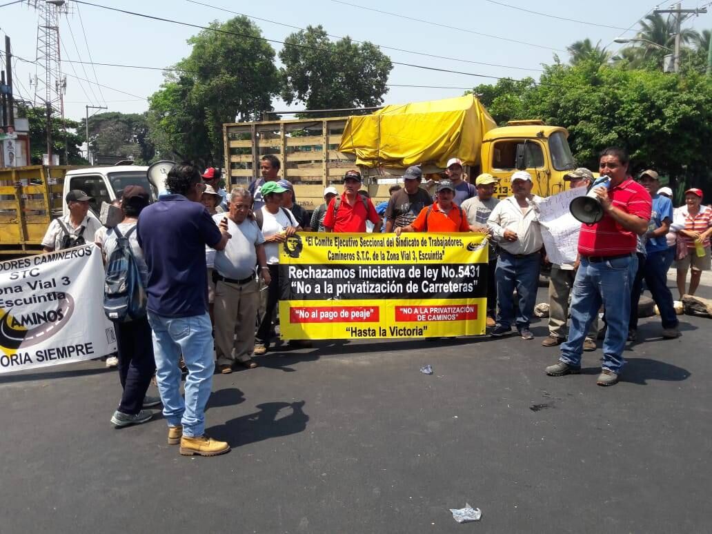 A inmediaciones de la entrada al departamento de Escuintla se reporta un bloqueo. En el lugar, decenas de trabajadores de caminos señalan estar en contra de la aprobación de la iniciativa.
