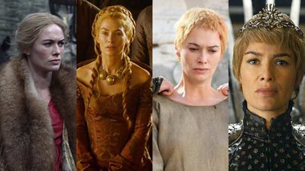 Comienza con su posición de reina de los Siete Reinos con peinados elaborados, así como con vestidos en amarillo, rosado y rojo, marcando distancia con los demás personajes. A veces, aparece más discreta y sobrepasada por Robert en siluetas como kimonos y colores pastel. Pero, cuando él muere, comienza a tener vestidos mucho más statement en colores como verde y peinados igual de elaborados. También se caracteriza por usar los símbolos de su casa, Lannister, de la temporada 2 hasta la 5 en vestidos muy elaborados en rojos y oro , collares de león y brocados con el mismo símbolo,así como capas en tafetán y terciopelo, mostrando su pináculo de poder debido a su familia.
