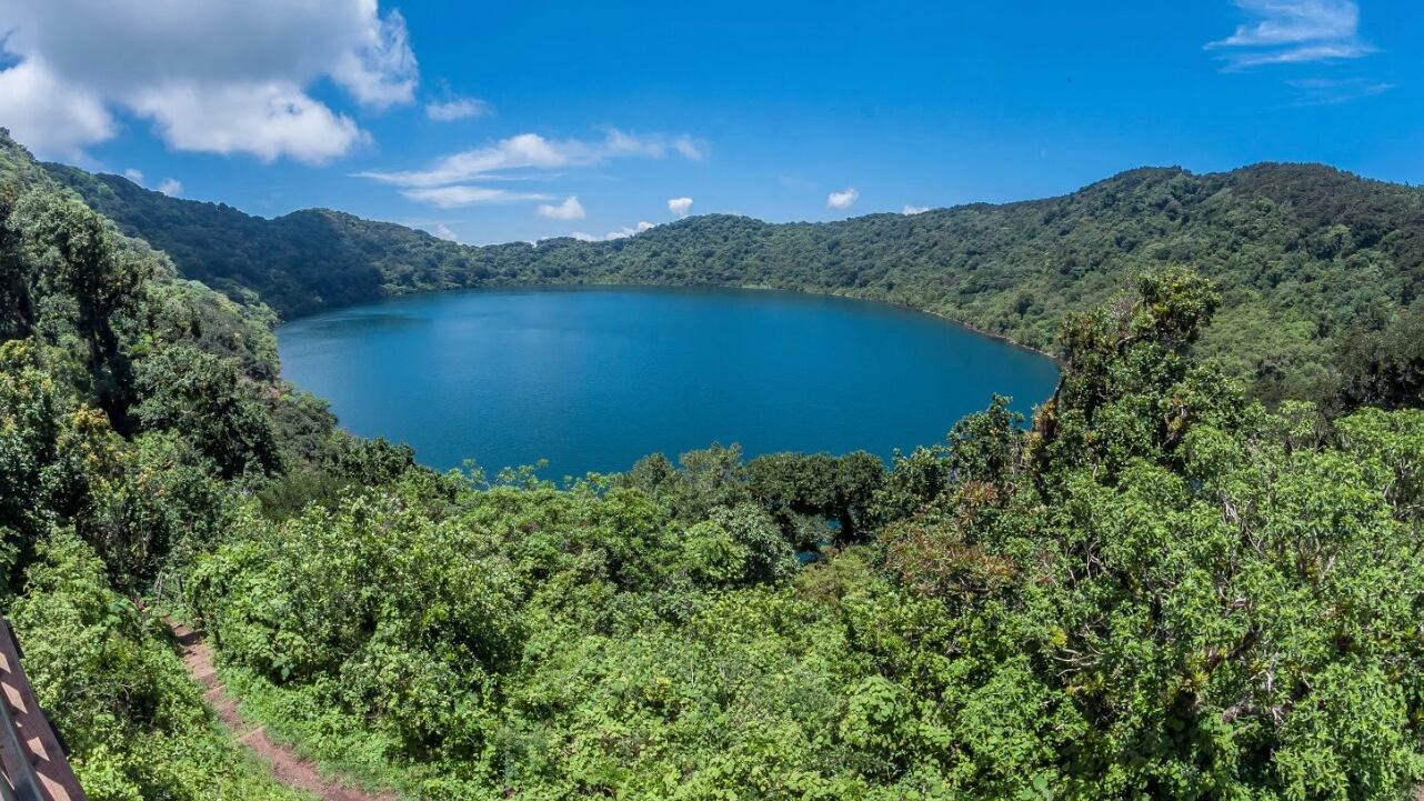 Por debajo del borde del cráter se extiende una laguna conocida como “laguna de Ipala”.
