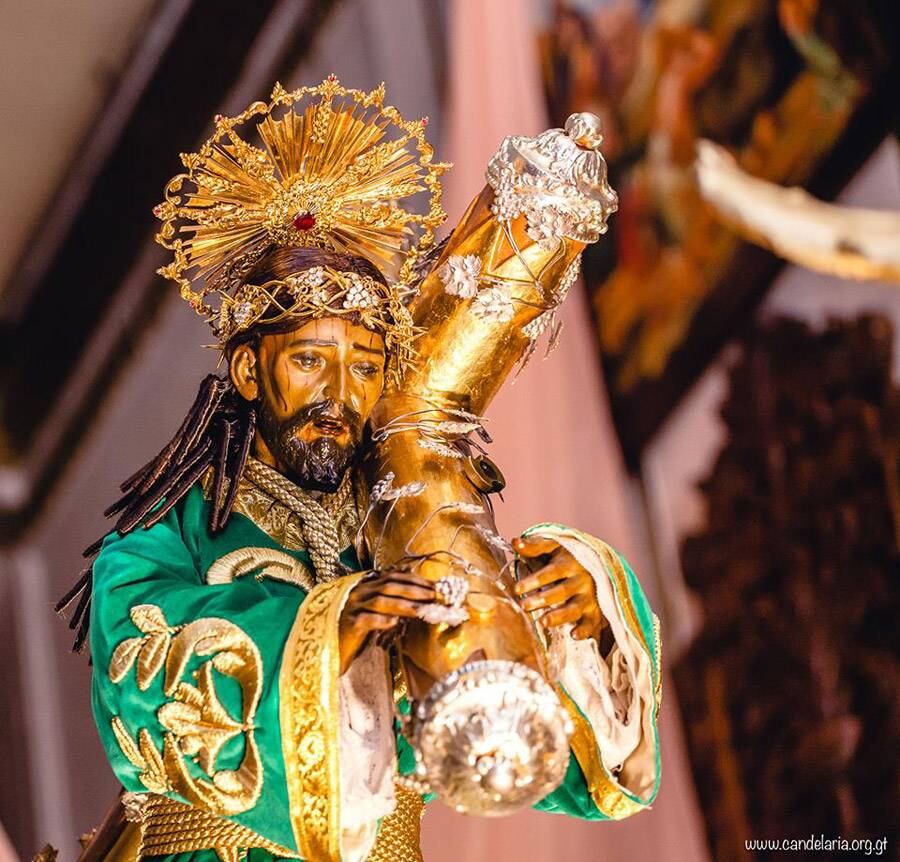 Al centro la réplica de Jesús Nazareno de Candelaria ubicado sobre la Santa Biblia.