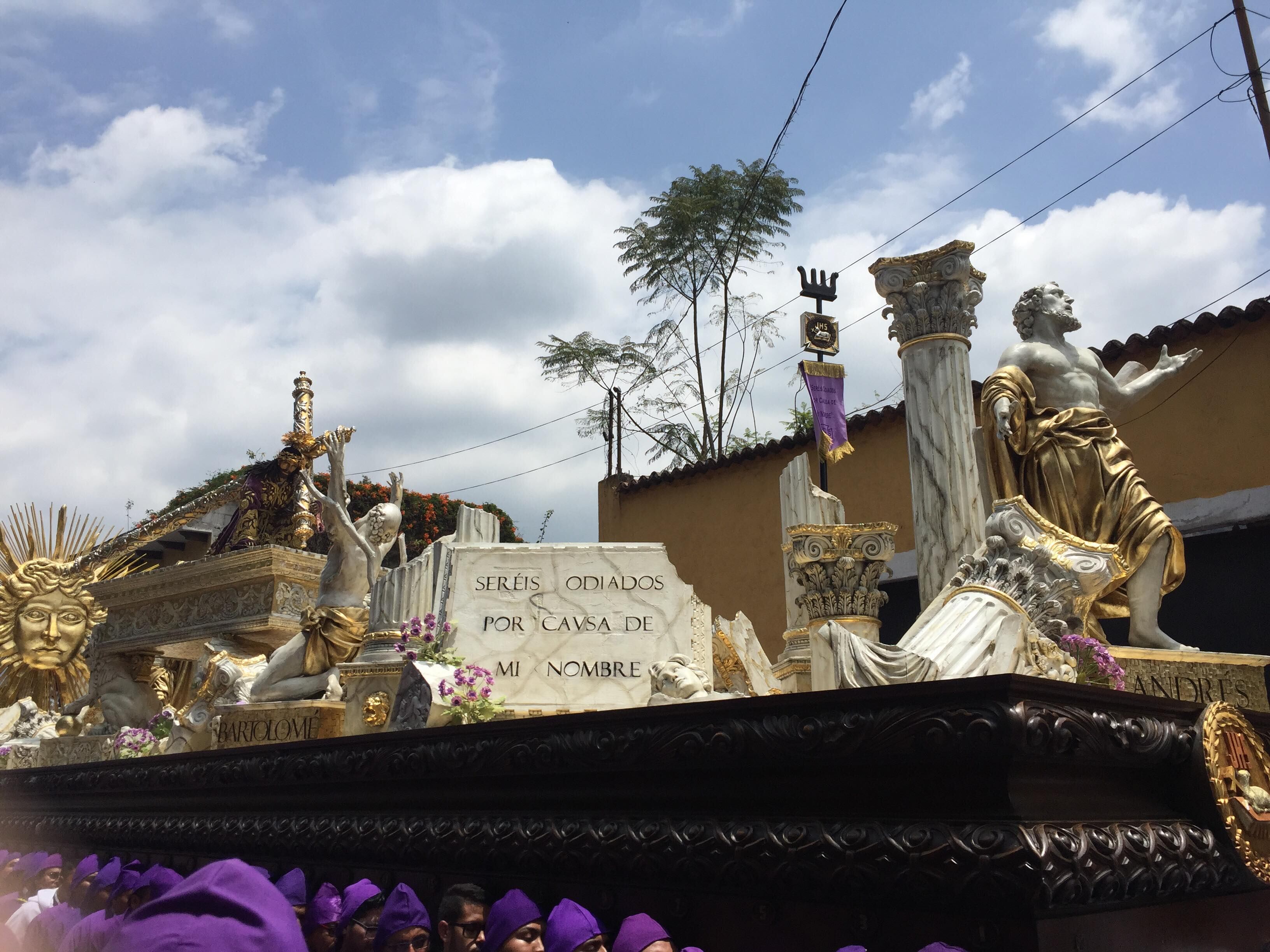 Las coloridas alfombras de aserrín por las calles empedradas de La Antigua Guatemala que se destacan durante esta época, pero el quinto domingo de Cuaresma decenas de religiosos y turistas acompañan la distinguida procesión de Jesús de la Caída.