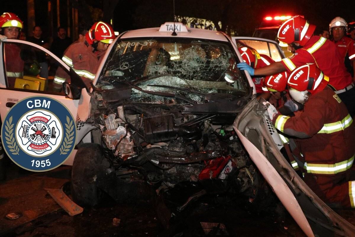 Dos personas heridas dejó como saldo una colisión ocurrida este jueves en la zona 12 capitalina. El conductor de un taxi quedó atrapado entre los hierros retorcidos del vehículo y fue necesario utilizar equipo especial para retirarlo.