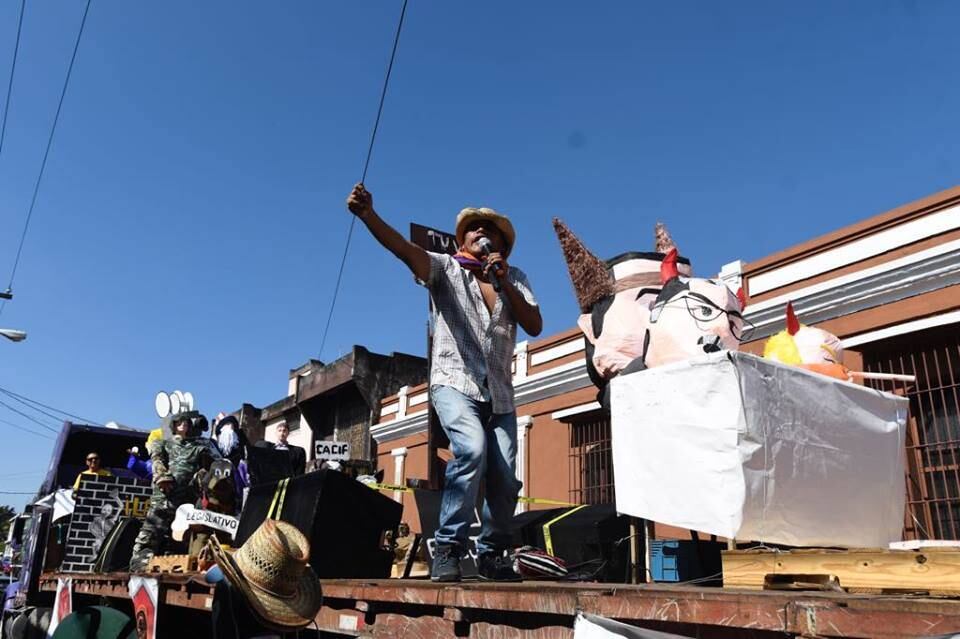 El Desfile Bufo en su 121 edición estuvo colmado de música, bailes y consignas de protesta que los sancarlistas lanzaban en contra de la administración gubernamental de Jimmy Morales, así como de varias figuras de la política nacional.