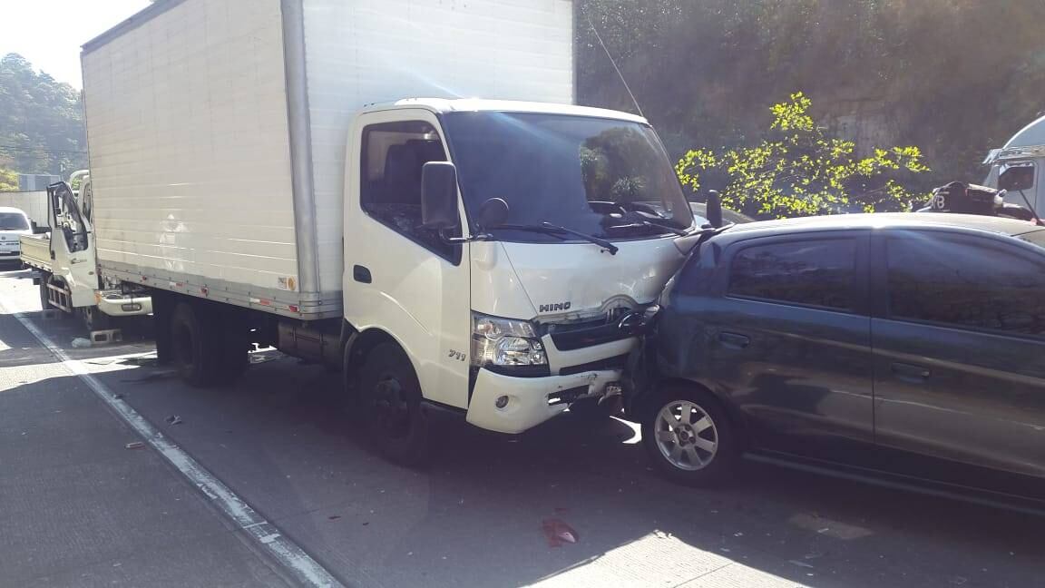 - El kilómetro 22 de la ruta Interamericana, en donde dos camiones y tres vehículos impactaron.