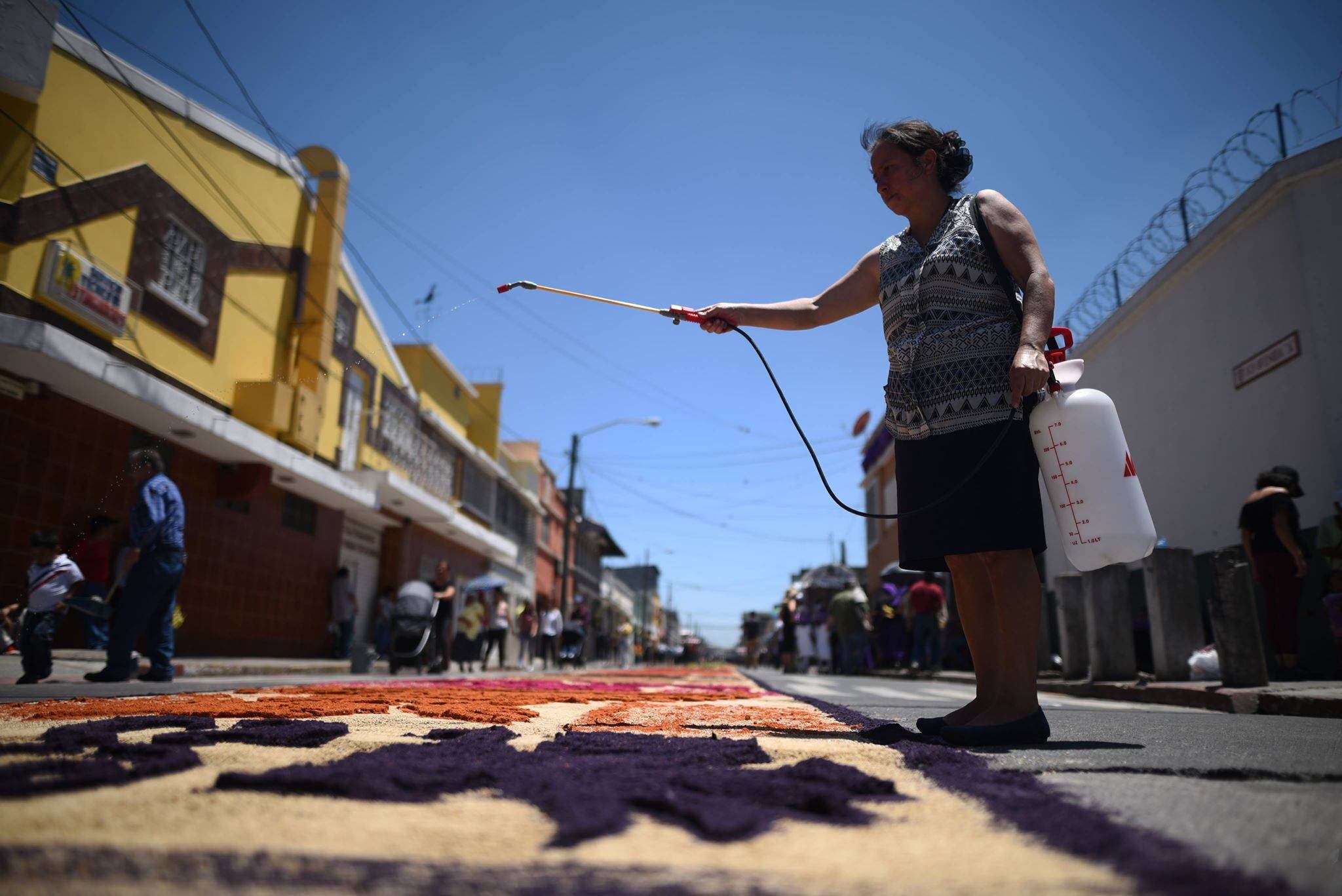 “Nos llena de mucha bendición y alegría saber que este año el señor de los milagros recorrerá enfrente de nuestra casa”, comenta Sandra Nohemí Flores, quien desde tempranas horas de la mañana junto con su familia empezaron a elaborar una alfombra para el Nazareno de los Milagros.