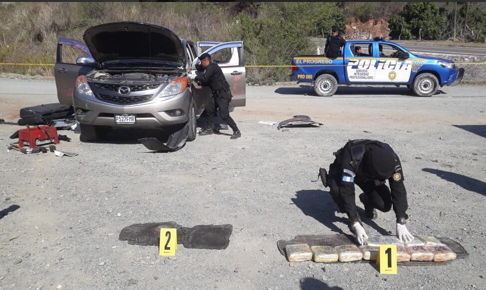 Se informó que agentes de la PNC inspeccionaron el pick up con placas P-527FMR, en el kilómetro 107 en jurisdicción de El Progreso, el cual se encontraba en un lote baldío y el cual se presume era utilizado para trasladar ilícitos.