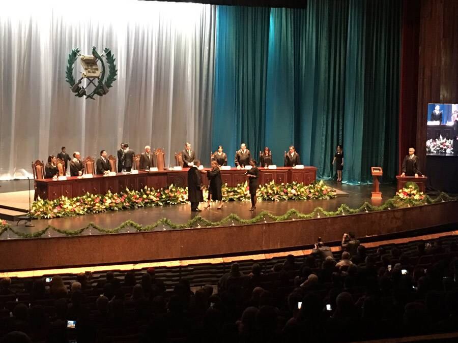 Todos los magistrados titulares y suplentes de la CC, así como el titular del Colegio de Abogados y Notarios, Ovidio Orellana Marroquín, y Pedro Aguilar, rector en funciones de la Universidad de San Carlos de Guatemala (Usac), estuvieron presentes en la ceremonia realizada en el Centro Cultural Miguel Ángel Asturias.