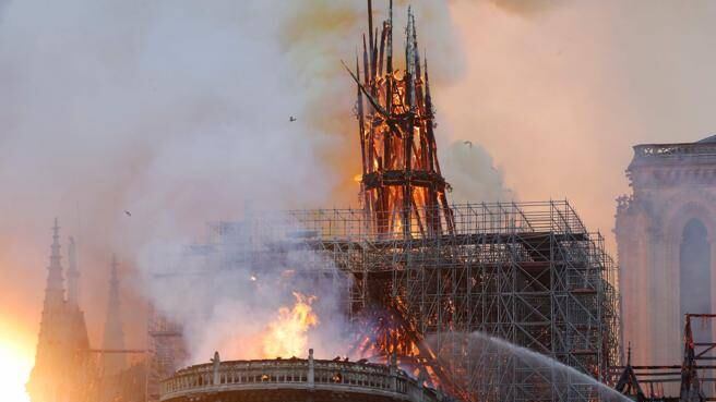 La aguja del templo, que estaba rodeada de un andamiaje por las obras, se encuentra envuelta en llamas, que se han extendido por parte del tejado.