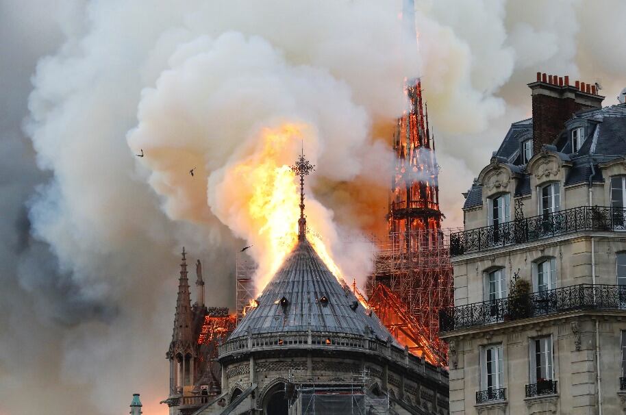 Mientras, el fuego devora el techado del monumento gótico de la Edad Media, en pleno corazón de París en la isla de la Cité.