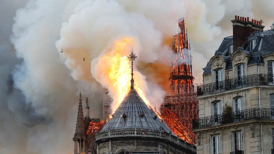 El fuego, cuya magnitud se desconoce por el momento, empezó en la parte superior de la catedral.