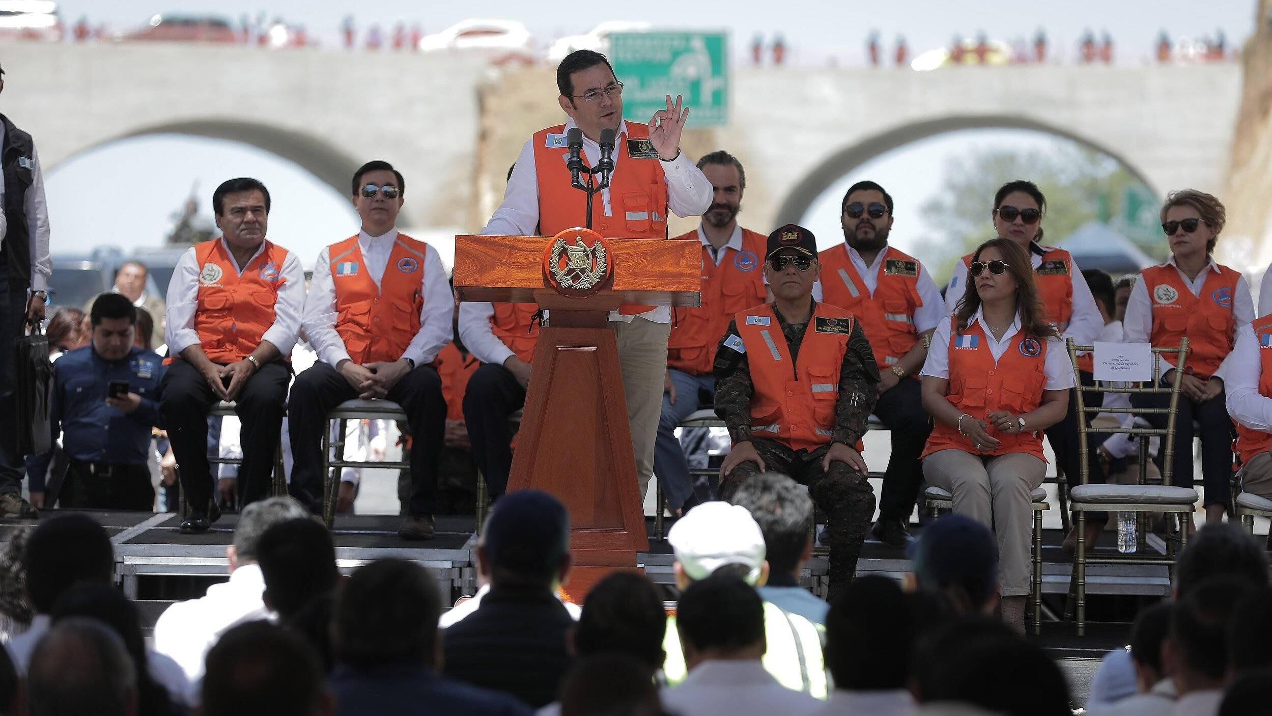El recordatorio se hizo después de que Morales junto a otros funcionarios y empleados públicos inauguraron un tramo carretero de 15.3 kilómetros del Libramiento de Chimaltenango, el cual fue posible por la aprobación de una ley para la expropiación de tierras.