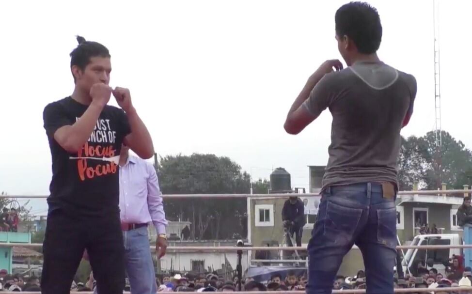 Como cada Viernes Santo, los habitantes de Chivarreto, San Francisco el Alto, en Totonicapán, "arreglan sus diferencias" a puño limpio frente a miles de espectadores.