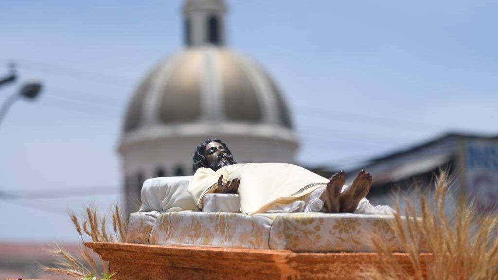 Acompañado de las notas de Cruzados de Cristo, inspiración del maestro Manuel Antonio Ramírez Crocker, dio inicio el solemne cortejo procesional infantil de Santo Entierro del Templo El Calvario.