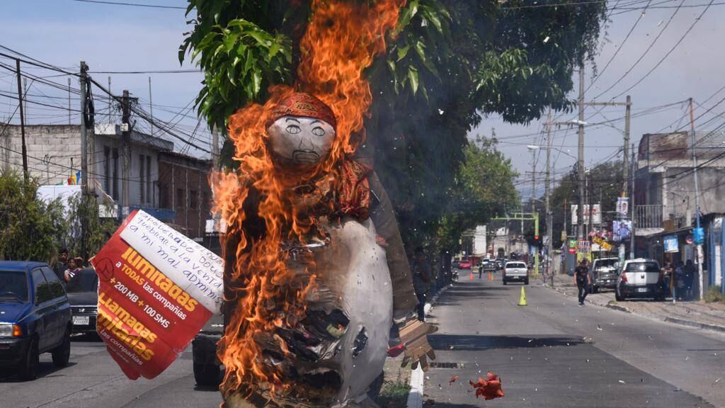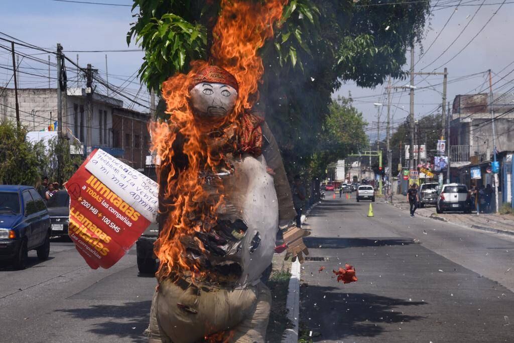 Un muñeco caracterizado como Judas, el discípulo traidor de Jesús, fue quemado en la calzada Doroteo Guamuch Flores en este Sábado Santo.