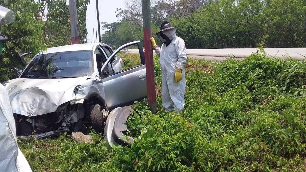 Al momento del choque del vehículo, un panal de abejas africanizadas cayó del árbol y atacó a las víctimas del percance vial.