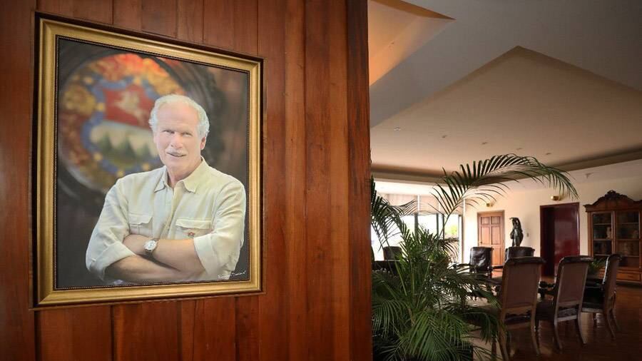 La Municipalidad de Guatemala colocó un retrato del exalcalde capitalino en la entrada del Salón del Concejo, en el Palacio Municipal.