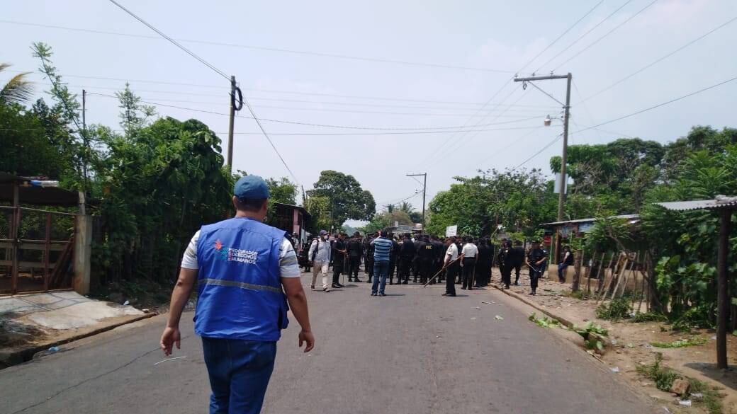 Tras el enfrentamiento de los vecinos del lugar y las fuerzas de seguridad pública, un agente de la Policía Nacional Civil (PNC) resultó herido.