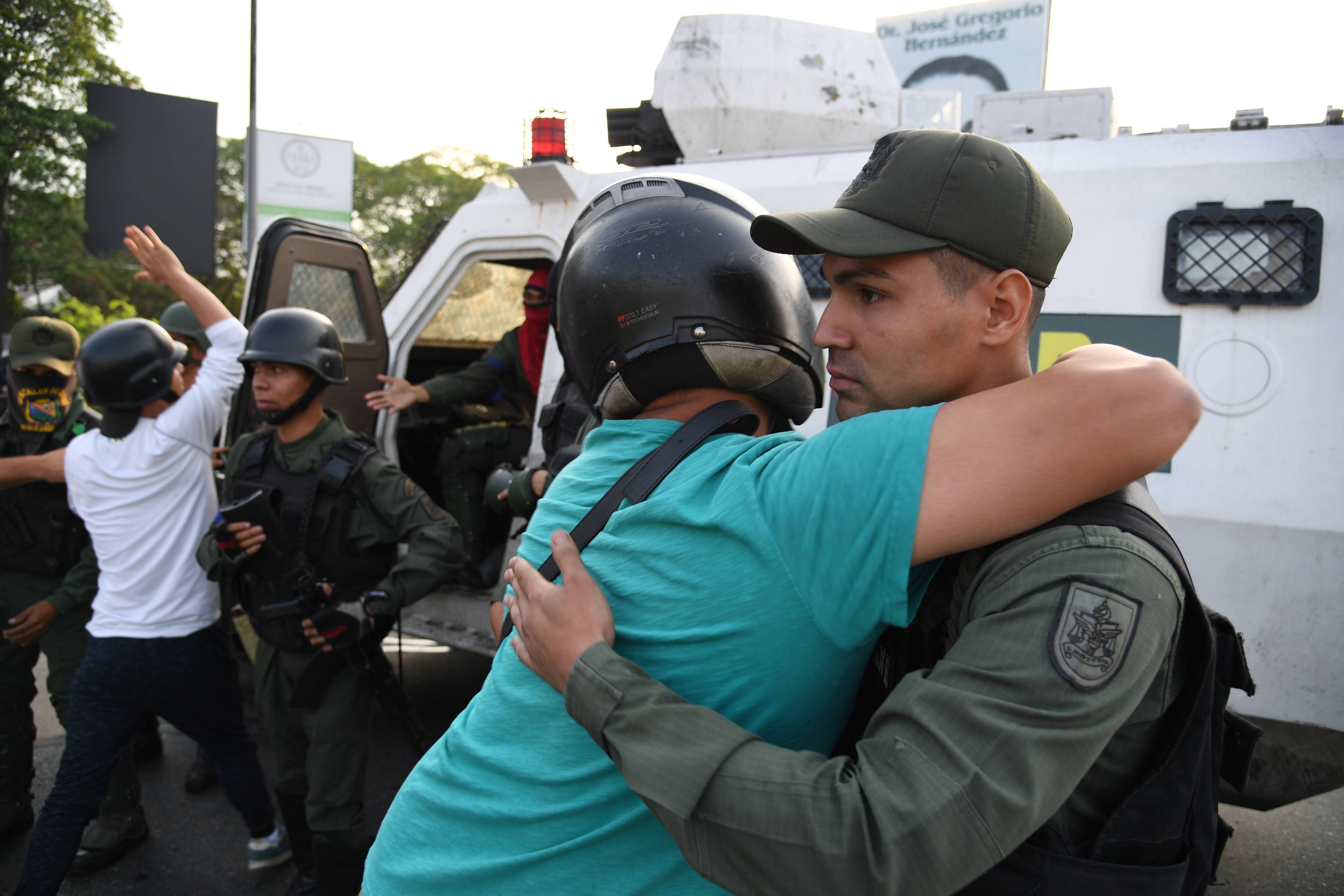 "Hoy, valientes soldados, valientes patriotas, valientes hombres apegados a la Constitución han acudido a nuestro llamado, hemos acudido también al llamado, nos hemos encontrado definitivamente en las calles de Venezuela", dijo el presidente interino, reconocido por más de 50 países.