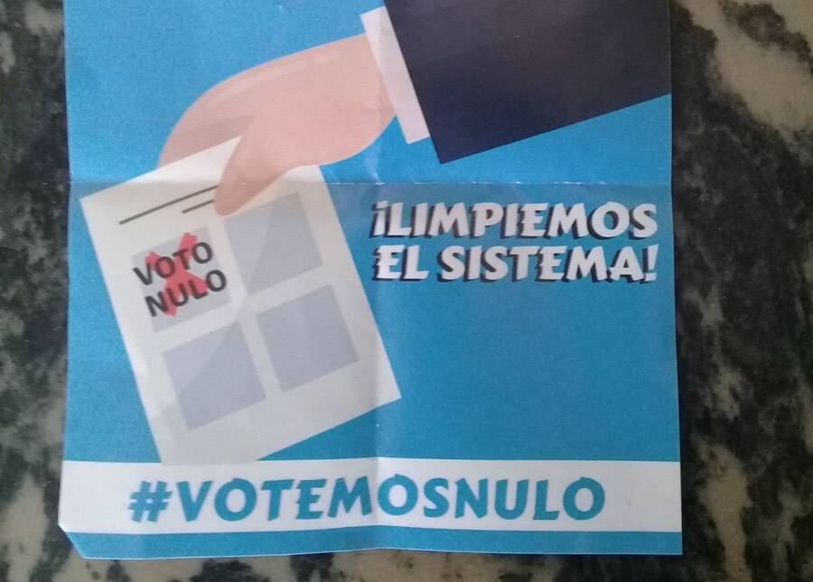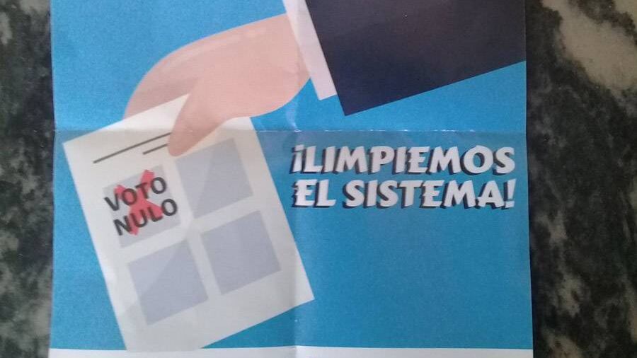 Ya no más lobos vestidos de ovejas. ¡Limpiemos el sistema! #VotemosNulo", es la leyenda que se lee.