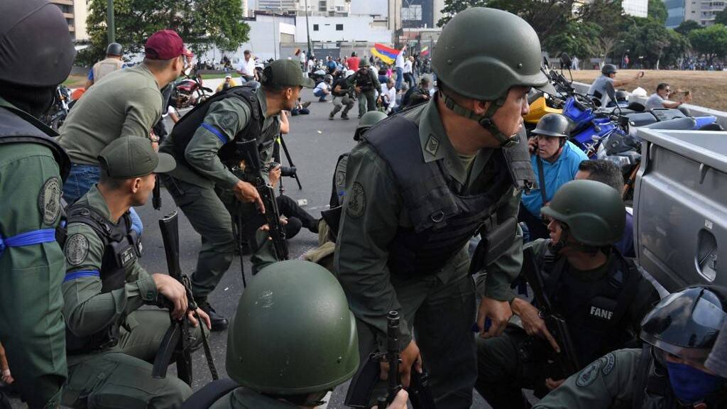 Desde el interior de la base, uniformados leales a Maduro lanzaron bombas lacrimógenas contra los opositores que atendieron el llamado de Guaidó.