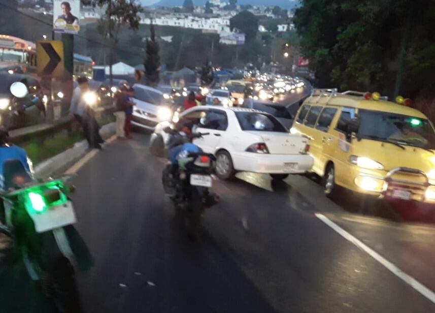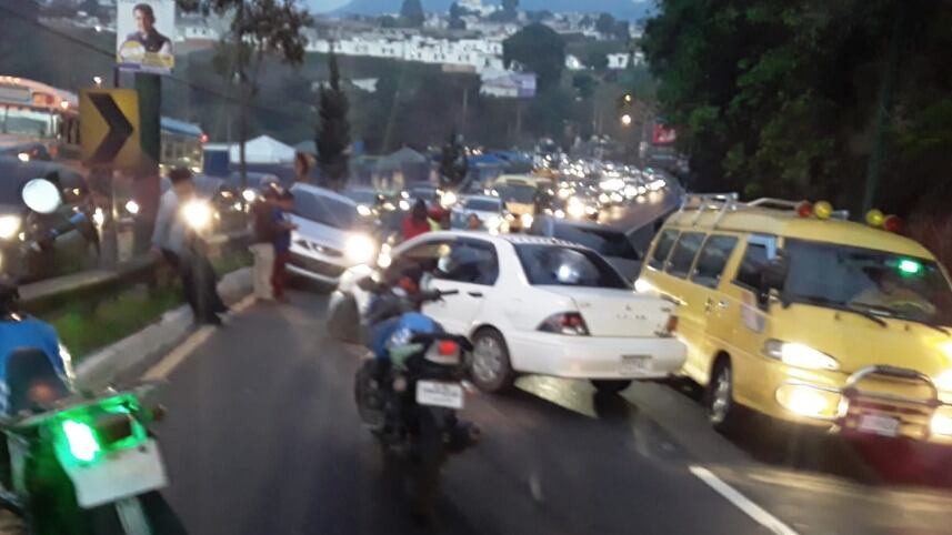 El percance se dio antes de la entrada a la colonia Atlántida, del lado de zona 17, y obstruyó temporalmente dos de los cuatro carriles.