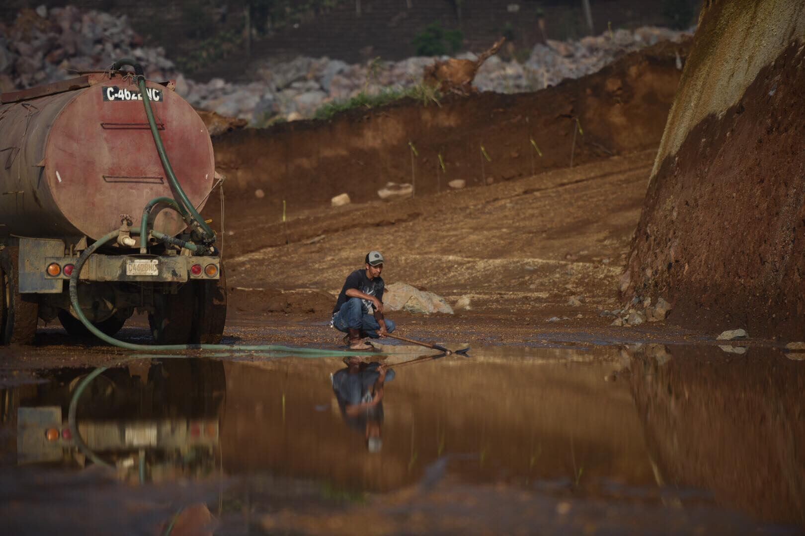Luego de que se inundara un tramo, este jueves 9 de mayo continuaron los trabajos de limpieza en libramiento de Chimaltenango para extraer el lodo y succionar el agua que aún se registraba.