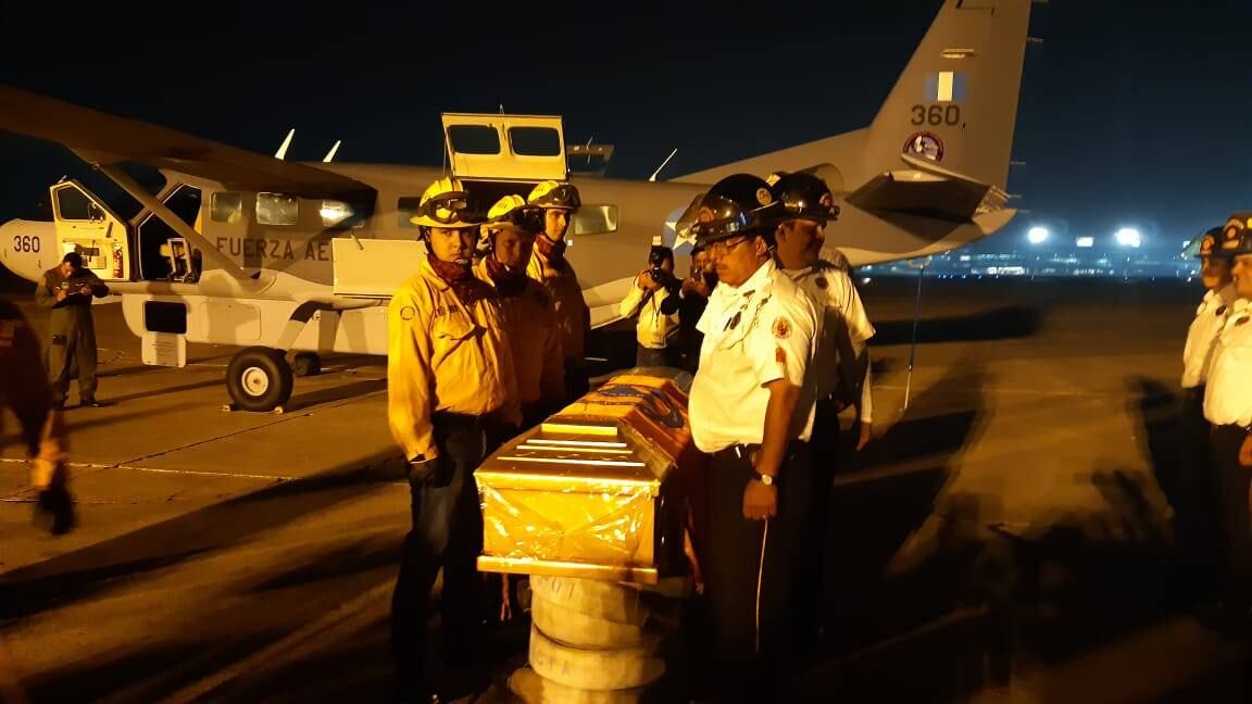 Los restos mortales del bombero Vicente Julajuj Cortéz, quien falleció el pasado lunes mientras combatía un incendio forestal, arribaron a la ciudad capital.