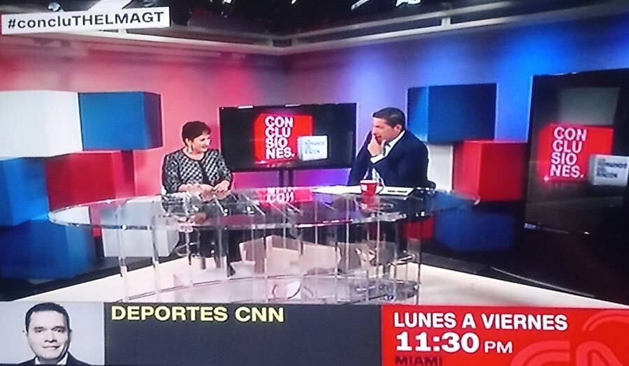 La ahora excandidata a la presidencia por el Movimiento Semilla, Thelma Aldana, participó en el llamado "Miami Challenge" con el periodista mexicano Fernando del Rincón, en la cadena estadounidense "CNN".