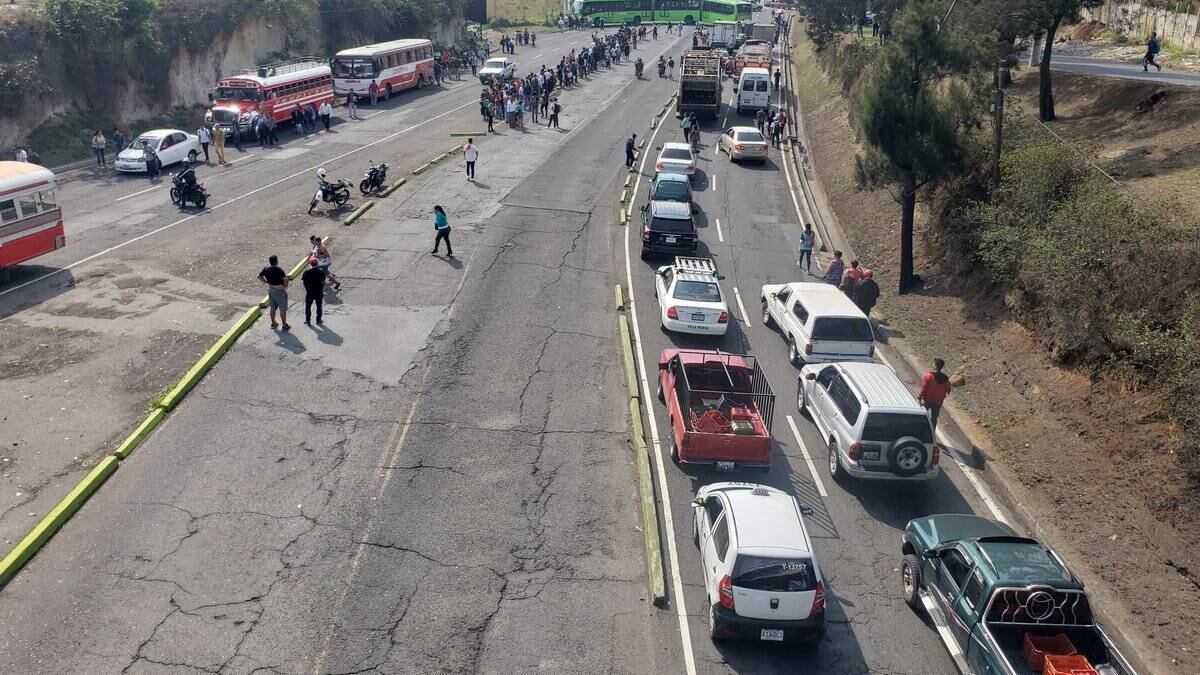 Amílcar Montejo, intendente de la Policía Municipal de Tránsito (PMT) de Guatemala, indicó que el grupo de personas bloqueaba el paso en la 51 calle, entre la calzada Aguilar Batres y la colonia Villalobos, en la zona 12.