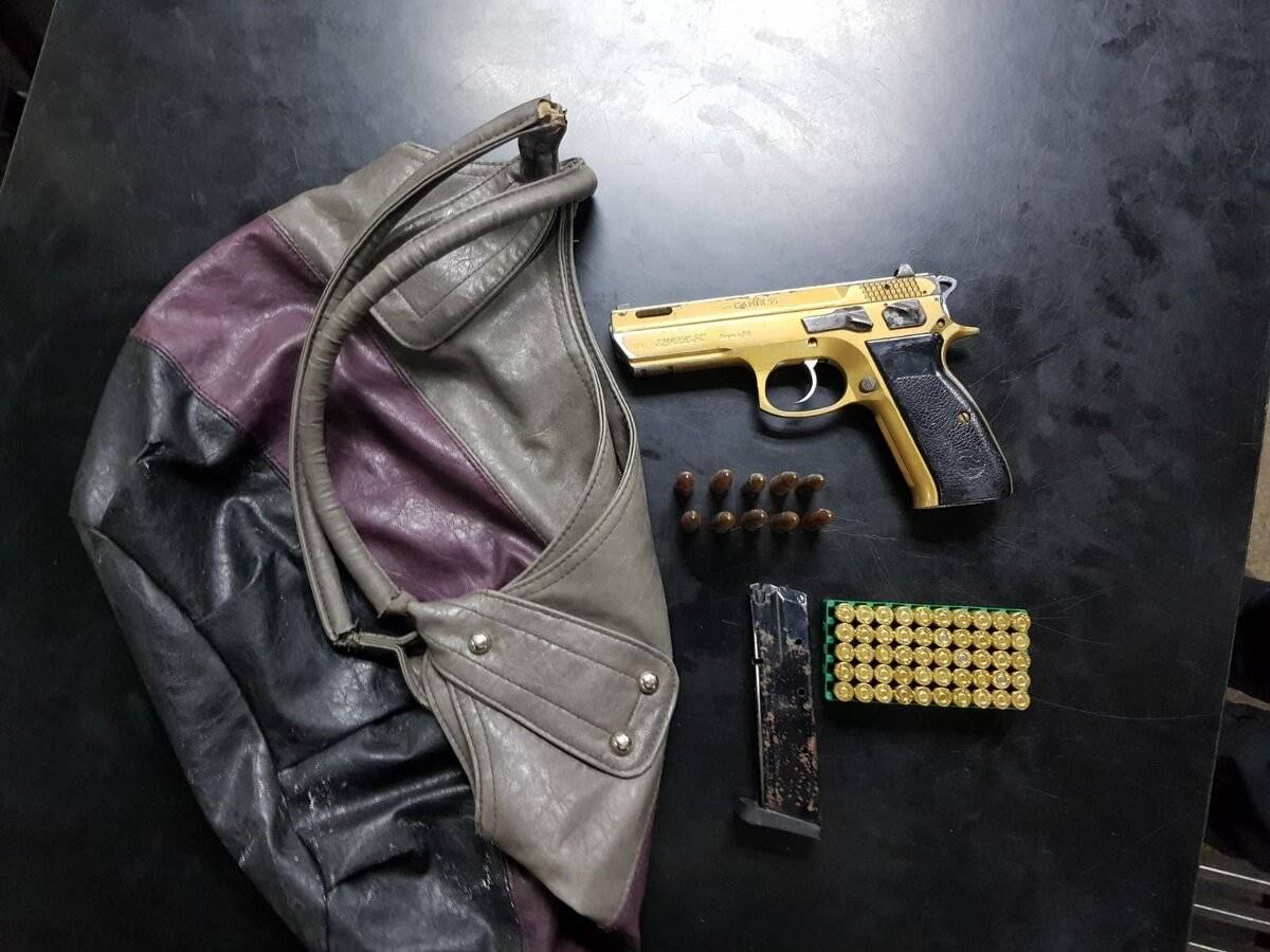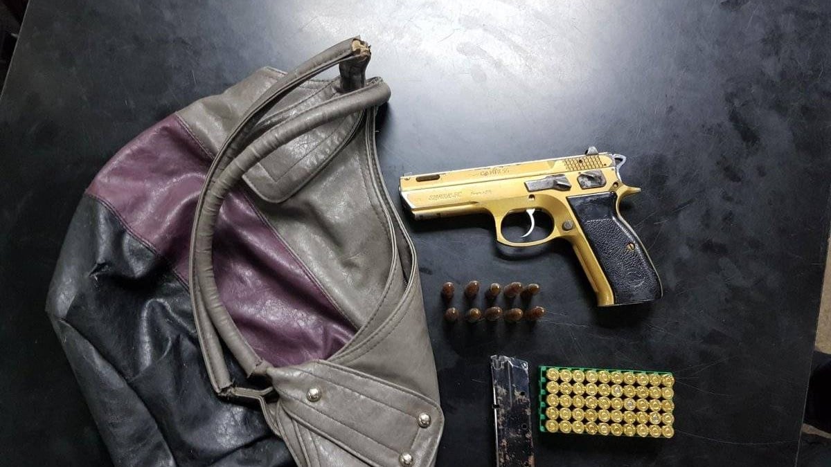 La Policía Nacional Civil (PNC) capturó a una pareja por supuestamente transportar una pistola en el interior de una pañalera.