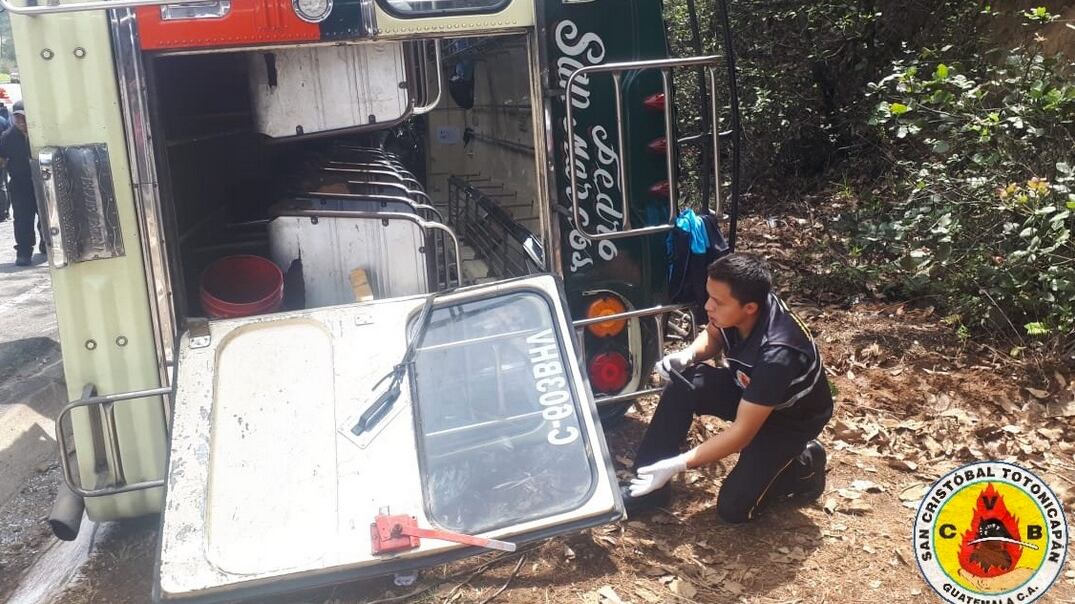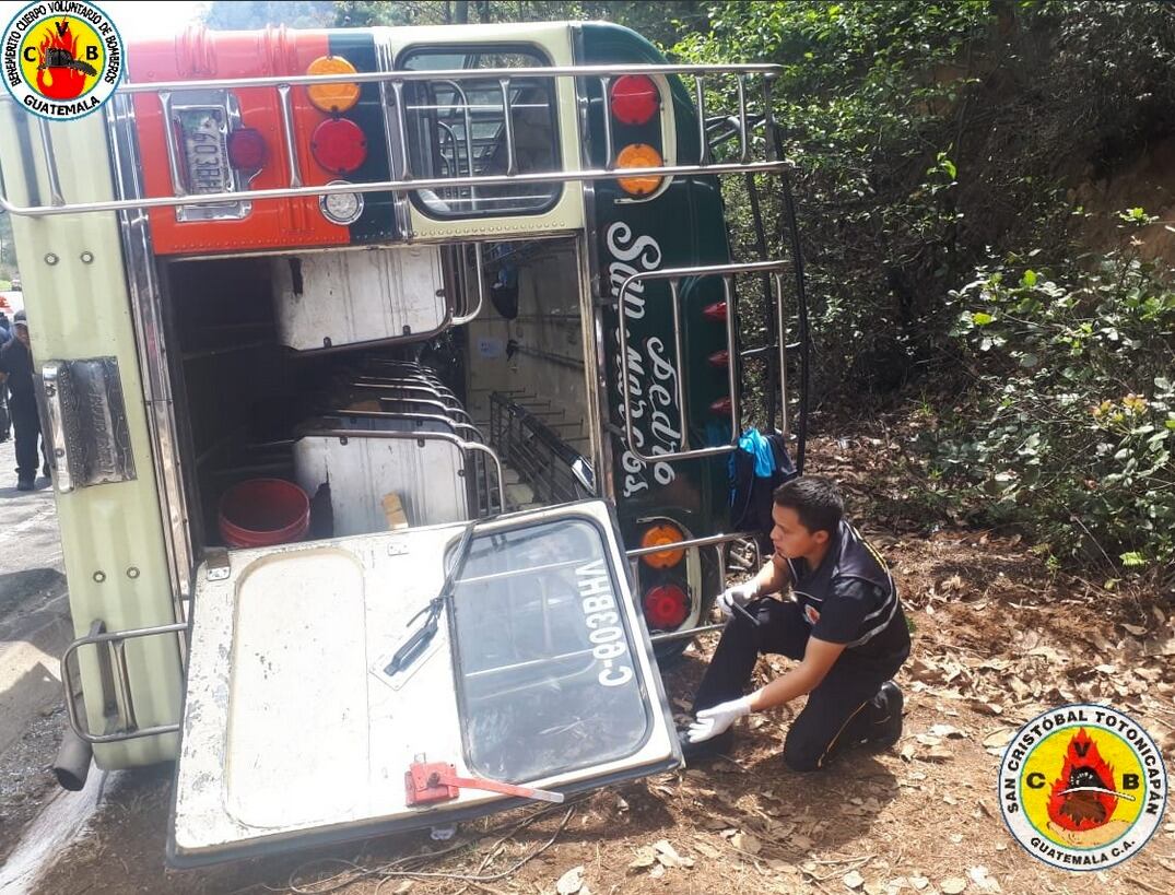 Una unidad del Transporte Tacaná volcó en el kilómetro 184 de la ruta Interamerciana, Totonicapán, por la cual fueron resultaron lesionadas nueve personas.