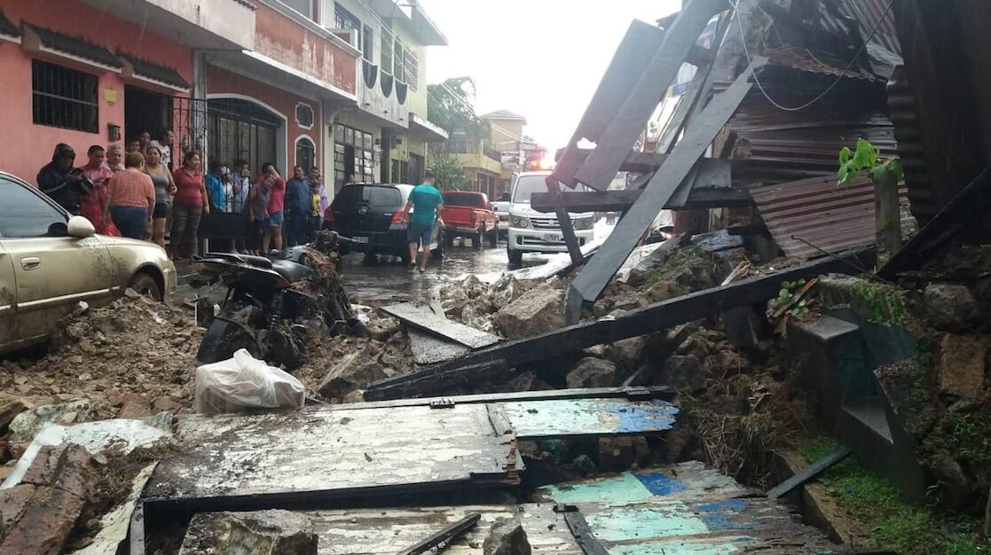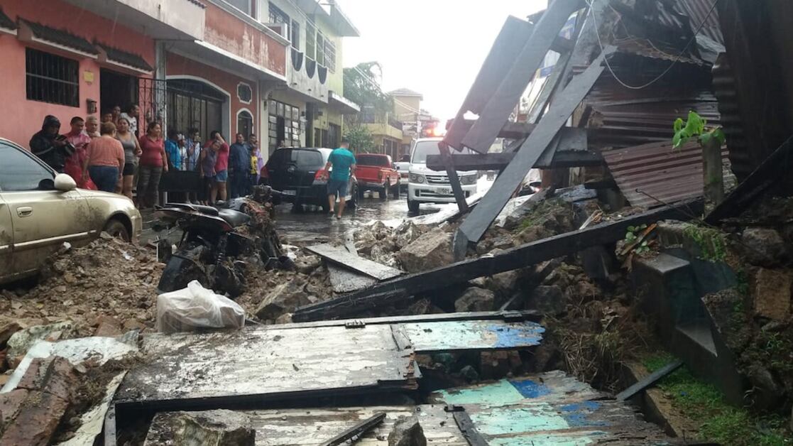 Debido a las fuertes lluvias que se han presentado la tarde del lunes 27 de mayo provocaron el colapso de una construcción antigua en Mazatenango.